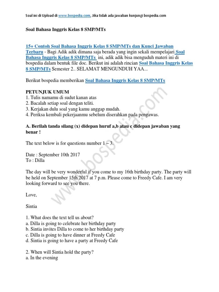 Soal bahasa inggris smp kelas 8 semester ganjil bagi bapak dan ibu guru smp . Buku kunci jawaban pr bahasa inggris kelas 8 semester 2 tahun 2020/21. Soal bahasa inggris kelas viii soal dan kunci uas bahasa inggris semester 1. nilai✔️100✔️ kunci jawaban bahasa inggris kelas 8 ✔️semester 1 dan semester 2 ✔️kurikulum 2013 revisi 2017 2016 kelas 2 smp mts . Inggris.pdf from aa 1kunci jawaban bahasa inggris kelas viii semester ganjil i.