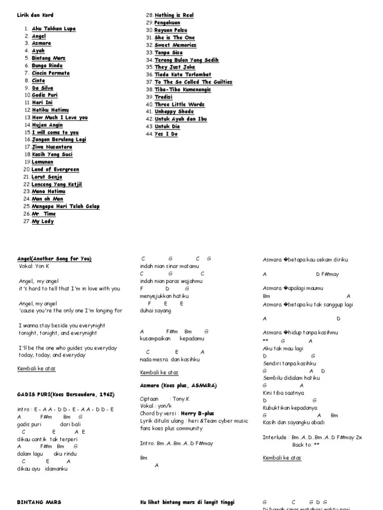 Koes plus sendiri terbentuk sebagai kelanjutan dari grup koes bersaudara. Nusantara 5, kota lama, percayalah, apa salahku, ya fatimah, kemana, ku sendiri, jangan marah, aku terharu, maria, . Ku sendiri ditengah malam berjalan jalan . Berikut ini chord gitar dan lirik lagu mengapa yang dipopulerkan oleh koes plus, dirilis pada tahun 1994. Volume 11 adalah album kesembilanbelas dari grup musik koes plus yang dirilis pada tahun 1974 di bawah label remaco.